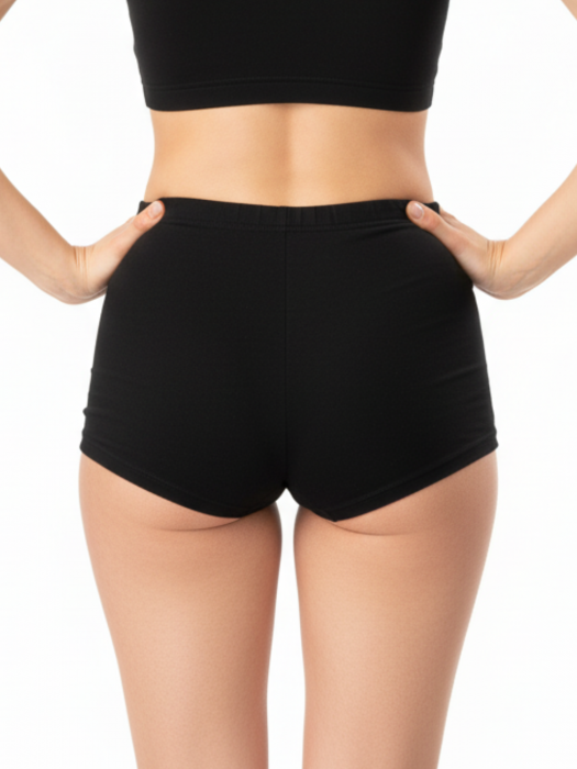 Шорты изготовлены из натурального хлопка с лайкрой. В состав изделия входит небольшой процент эластана для улучшения качественных показателей. Содержание хлопка даёт гипоаллергенность и позволяет телу дышать, содержание синтетических нитей придает эластичность, что делает ношение более комфортным. Шортики имеют среднюю линию талии и создают идеальный силуэт. По линии талии идет мягкая и широкая эластичная тесьма. Низ изделия обработан плоским швом вподгибку без использования эластичной тесьмы, чтобы не передавливать бедра. У данной модели нет ластовицы, т.к. шорты можно использовать как домашнюю или спортивную одежду, надевая под них нижнее белье. Выверенные классические конструкции шорт созданы для вашего максимально комфорта и удобства. Изделие не боится многократных стирок. Со временем белье не меняет цвет и не растягивается. Шорты со средней линией талии очень удобны в повседневной носке, а также их можно использовать для спорта, бега, йоги, танцев, фитнеса, гимнастики и активного отдыха, а также в период беременности и после родов.