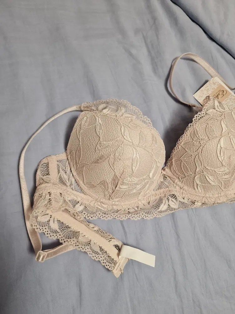 Бюстгальтер Push-up на каркасах изготовлен из эластичного кружева. Формованные чашки бюстгальтера пуш-ап выполнены с хлопковой изнанкой. Изнаночная сторона тесьмы и бретелей бюстгалтера очень мягкая и приятная к телу. Бретели регулируются по длине. У бюстгальтера в качестве декоративного элемента присутствует маленький бантик с украшением со стразами спереди по центру изделия.