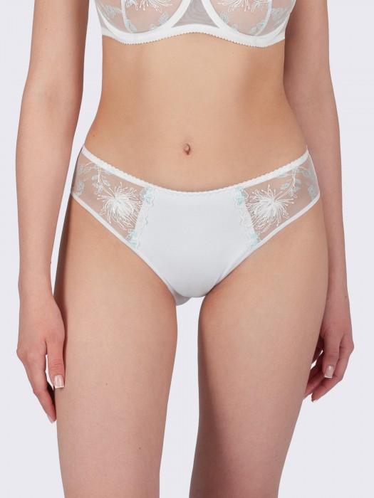 Трусы слипы изготовлены из гладкой эластичной трикотажной сетки с изысканной цветочной вышивкой в сочетании с натуральным хлопком. Трусики имеют среднюю линию талии и создают идеальный силуэт. Эластичная сетка, из которой изготовлено нижнее белье, имеет шелковистую структуру, очень нежная на ощупь, а также отличается высокими гигиеническими свойствами. Внутренний уплотнитель переда выполнен из натурального хлопка с лайкрой и цельнокроен с ластовицей. Задняя часть изделия из натурального хлопка. Узкое эластичное ленты по линии бедер настрочены незаметным плоским швом, чтобы трусики не выделялись под одеждой. По линии талии идет мягкая эластичная тесьма. Выверенные классические конструкции трусов слипов подчеркивают изящество фигуры и создают комфорт. Изделие не боится многократных стирок. Со временем белье не меняет цвет и не растягивается. Слипы классической конструкции очень удобные в повседневной носке, а также их можно использовать для спорта, бега, йоги, танцев, фитнеса, гимнастики, для торжественных случаев, как свадебное белье.