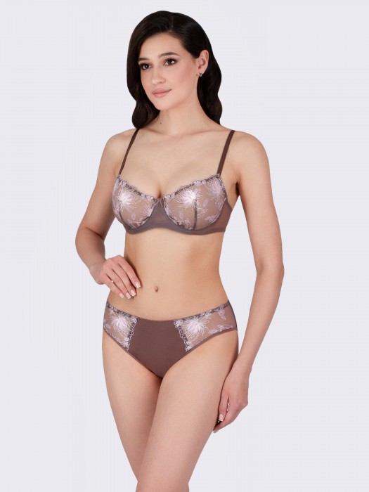 Трусы слипы изготовлены из гладкой эластичной трикотажной сетки с изысканной цветочной вышивкой в сочетании с натуральным хлопком. Трусики имеют среднюю линию талии и создают идеальный силуэт. Эластичная сетка, из которой изготовлено нижнее белье, имеет шелковистую структуру, очень нежная на ощупь, а также отличается высокими гигиеническими свойствами. Внутренний уплотнитель переда выполнен из натурального хлопка с лайкрой и цельнокроен с ластовицей. Задняя часть изделия из натурального хлопка. Узкое эластичное ленты по линии бедер настрочены незаметным плоским швом, чтобы трусики не выделялись под одеждой. По линии талии идет мягкая эластичная тесьма. Выверенные классические конструкции трусов слипов подчеркивают изящество фигуры и создают комфорт. Изделие не боится многократных стирок. Со временем белье не меняет цвет и не растягивается. Слипы классической конструкции очень удобные в повседневной носке, а также их можно использовать для спорта, бега, йоги, танцев, фитнеса, гимнастики, для торжественных случаев, как свадебное белье.